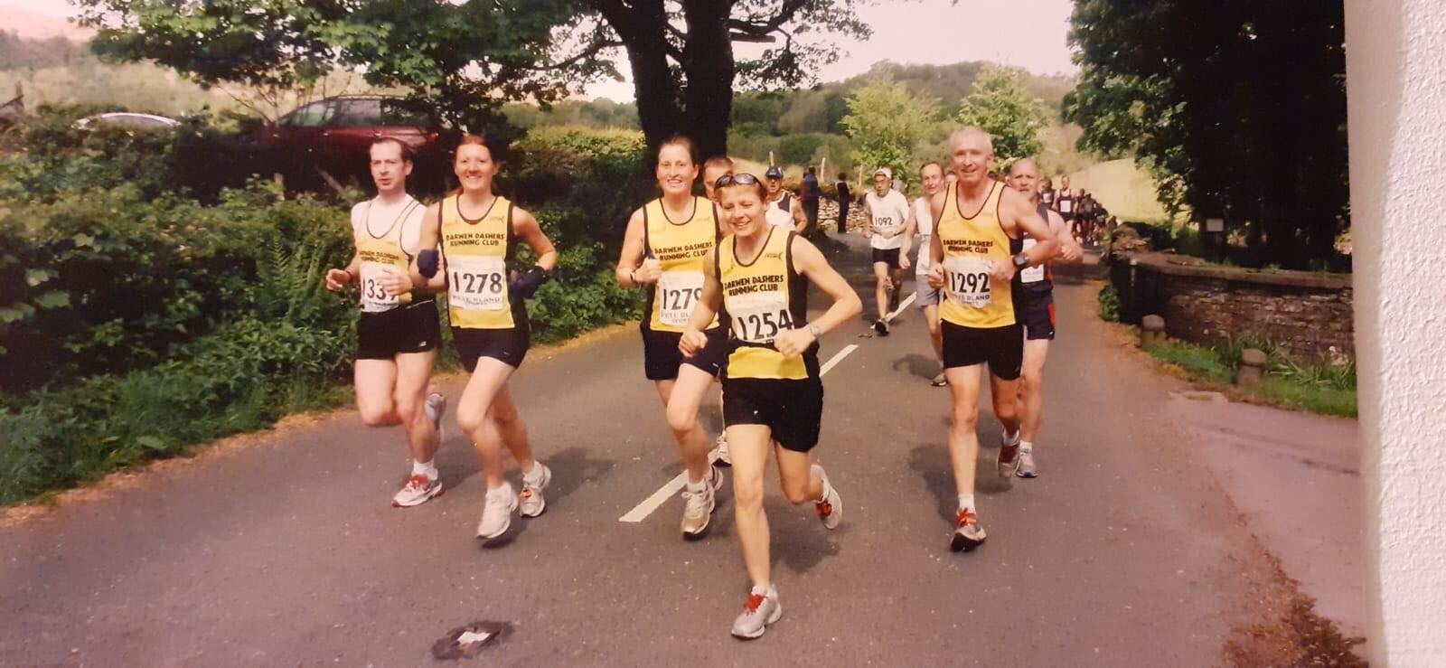 I’ve been a Dasher since 1999 and everyone then and now are always so friendly, supportive and encouraging. I’m proud to wear my Dashers vest at races. It fills me with pride when I hear race supporters and fellow racers shout encouragement “well done Dasher” “come on Dasher” you get the gist! Everyone recognises Darwen Tower and the yellow and black vest.